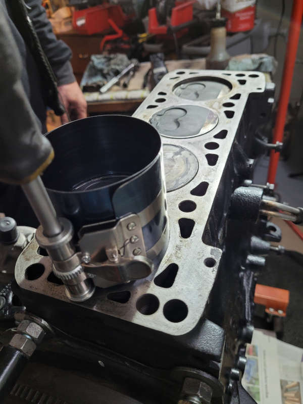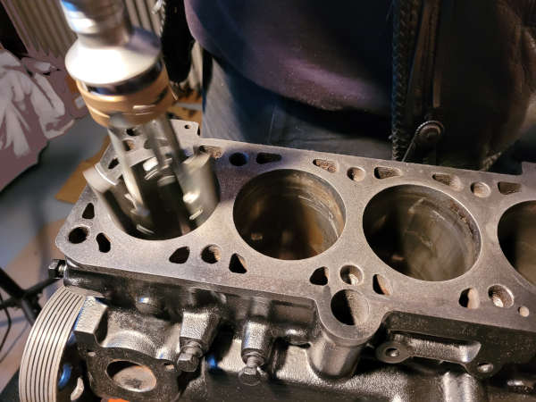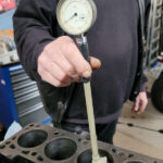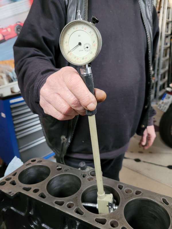 Die Zylinder werden mit einfachem Gerät vermessen und gehohnt.