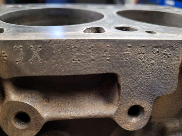 Die Motornummer *JX —* ist oben am Block neben der Unterdruckpumpe eingeschlagen.